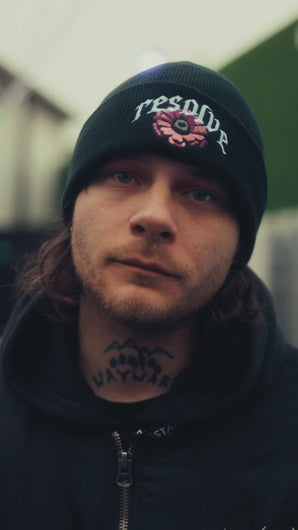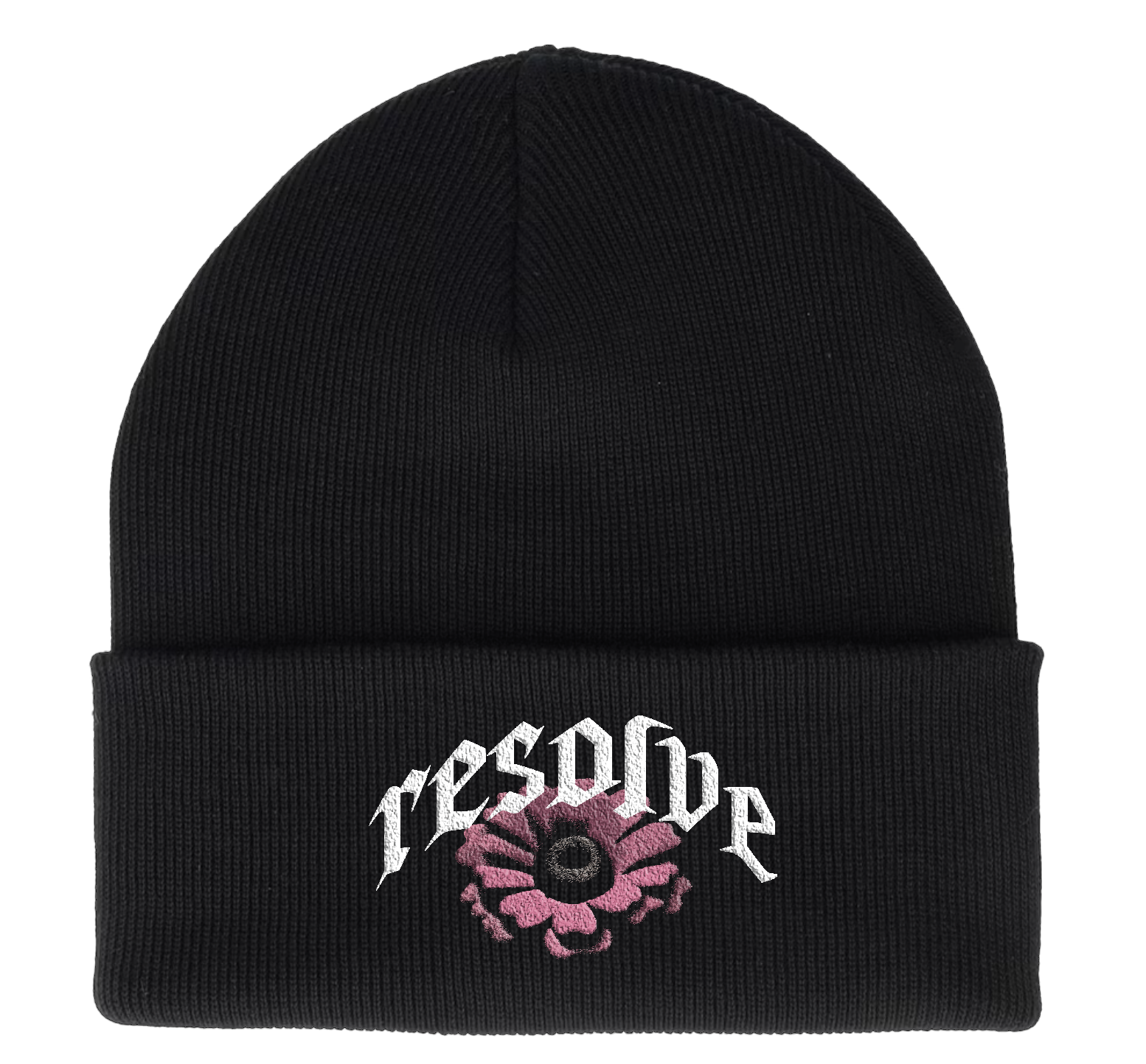 Embroidery on black Beechfield B45 beanie, one size fits all.