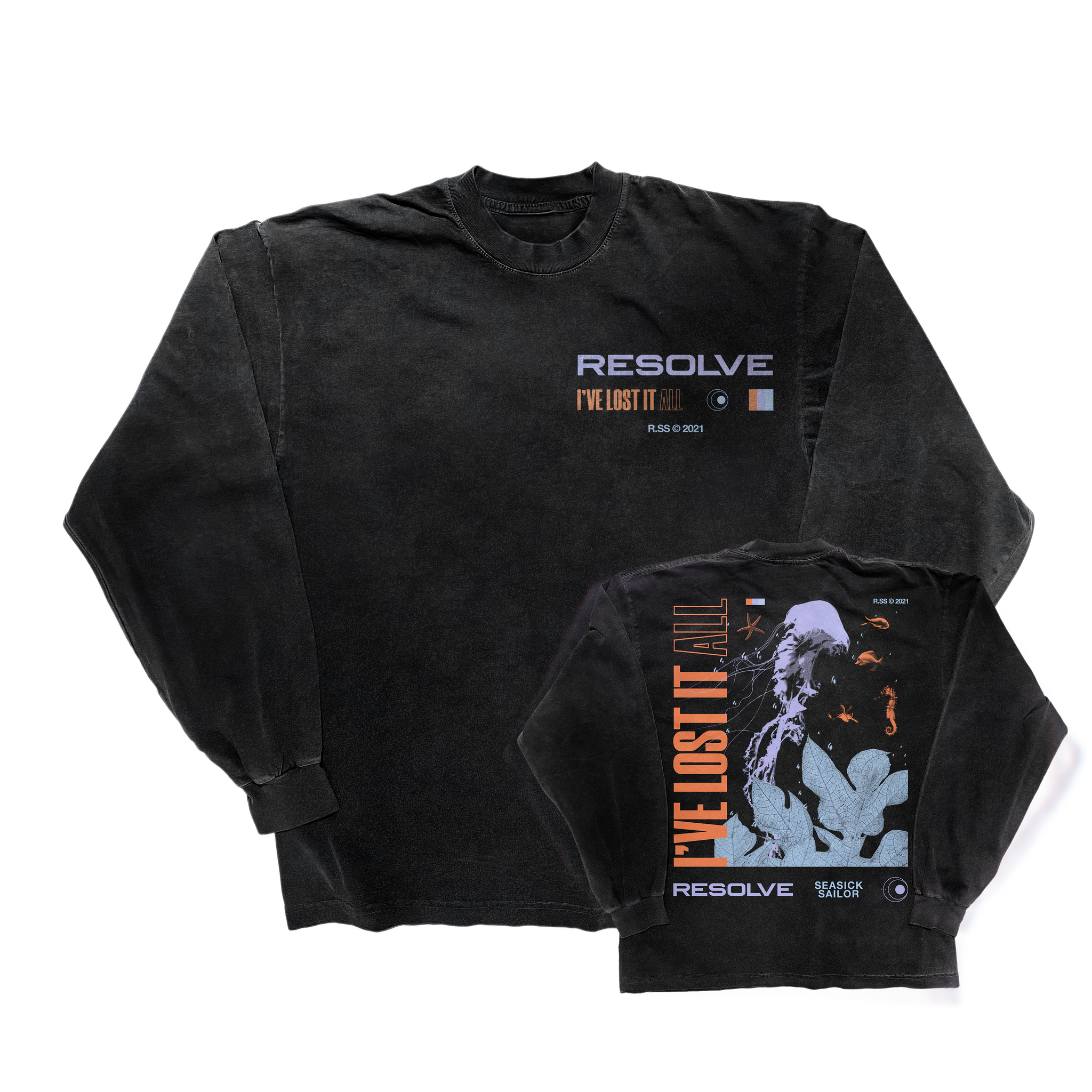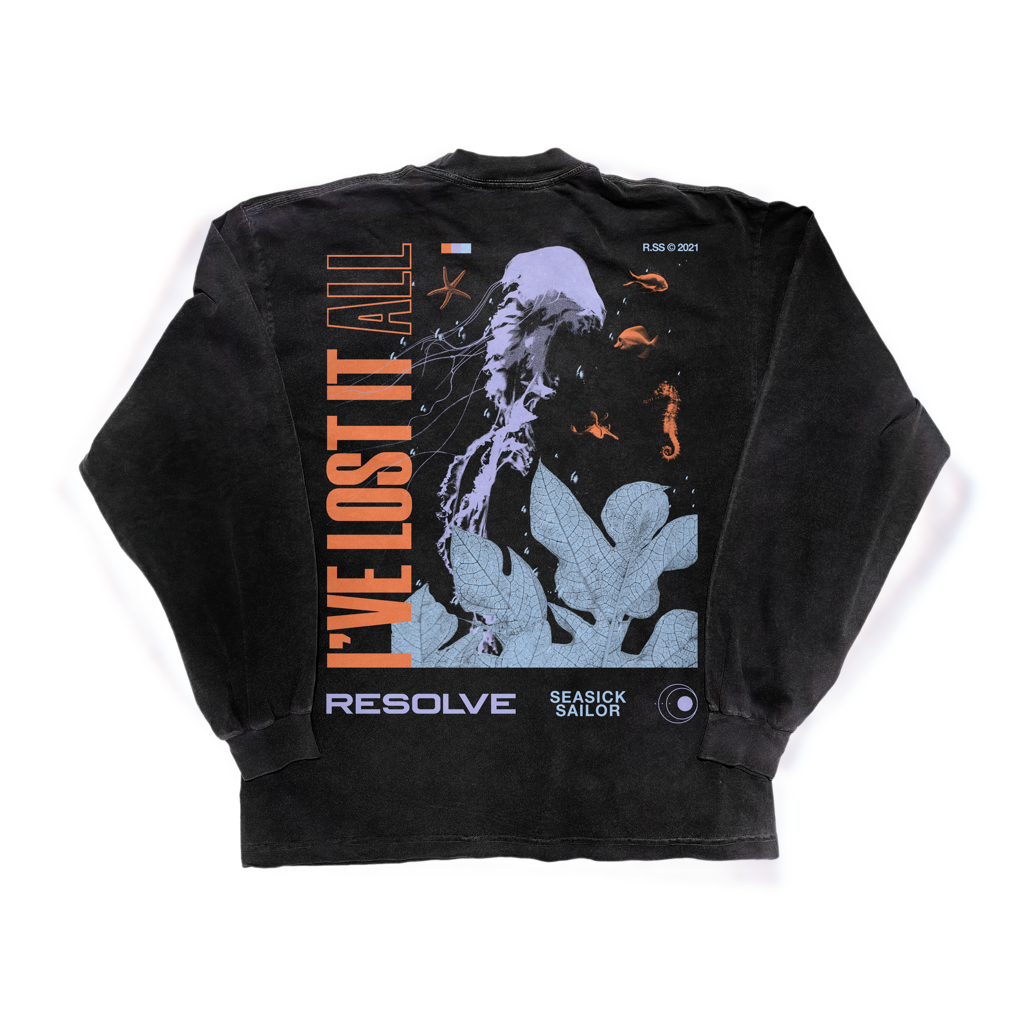 Seasick longsleeve tee with front and back print on a black Gildan Ultra Cotton.